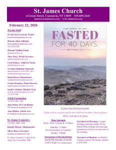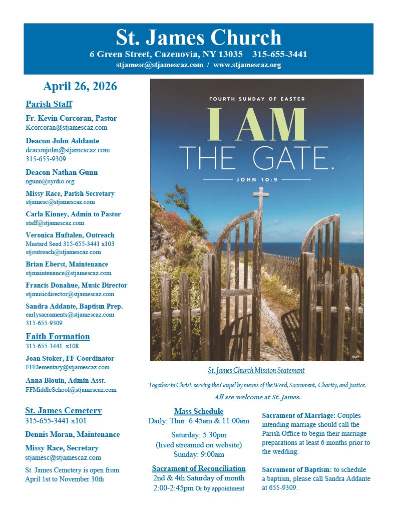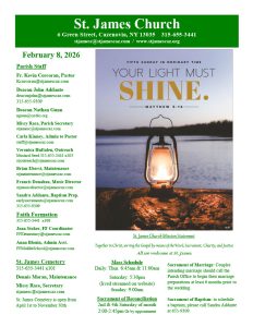 Do you prefer a weekly e-Bulletin from St. James sent to your email inbox? If so, send an email to stjamessite2015@gmail.com to request a weekly subscription.